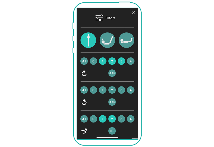 - Position (Standing, stomach, back)
