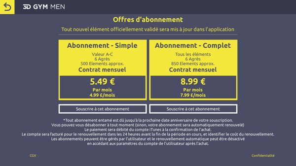 *Si vous passez d'un abonnement complet à un abonnement simplifié, vous accéderez encore à l'ensemble des éléments jusqu'à la prochaine date d'anniversaire de votre souscription. Puis vous serez prélevé du nouveau montant (5.49€) à la date d'anniversaire de votre souscription et vous aurez accès seulement aux éléments de valeur A à C (env 500 éléments)