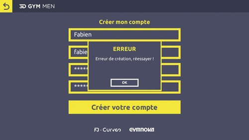 Si vous avez toujours le message d'erreur, il est fort probable que vous ayez déjà un compte sur notre site www.fb-curves.com, les comptes application et siteweb étant reliés, veuillez utiliser les même identifiants.