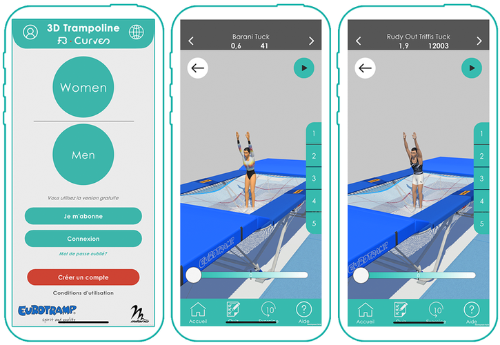 Tous les éléments de trampoline (FIG) en animation 3D! Pour découvrir, apprendre, se former et progresser, une application indispensable !